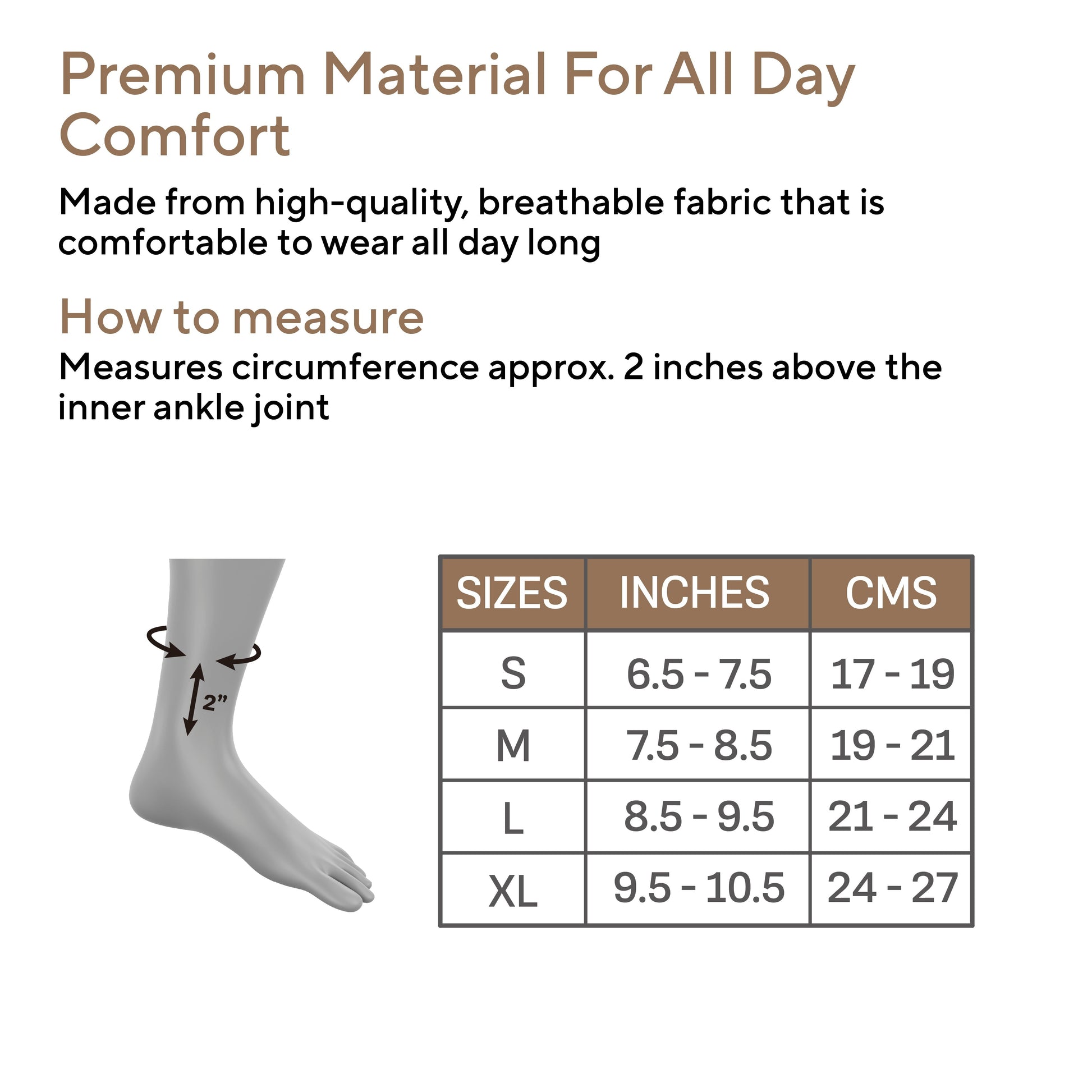 • CARE INSTRUCTIONS & SIZING: FOVERA Ankle Compression Sleeves come in 4 different sizes S, M, L, & XL which makes it suitable for men & women. Choose the correct size from the provided size chart for a comfortable fit. For care, hand wash them with mild detergent and water at room temperature. Dry them in shade on a flat surface. Do not dry clean, iron, or bleach.