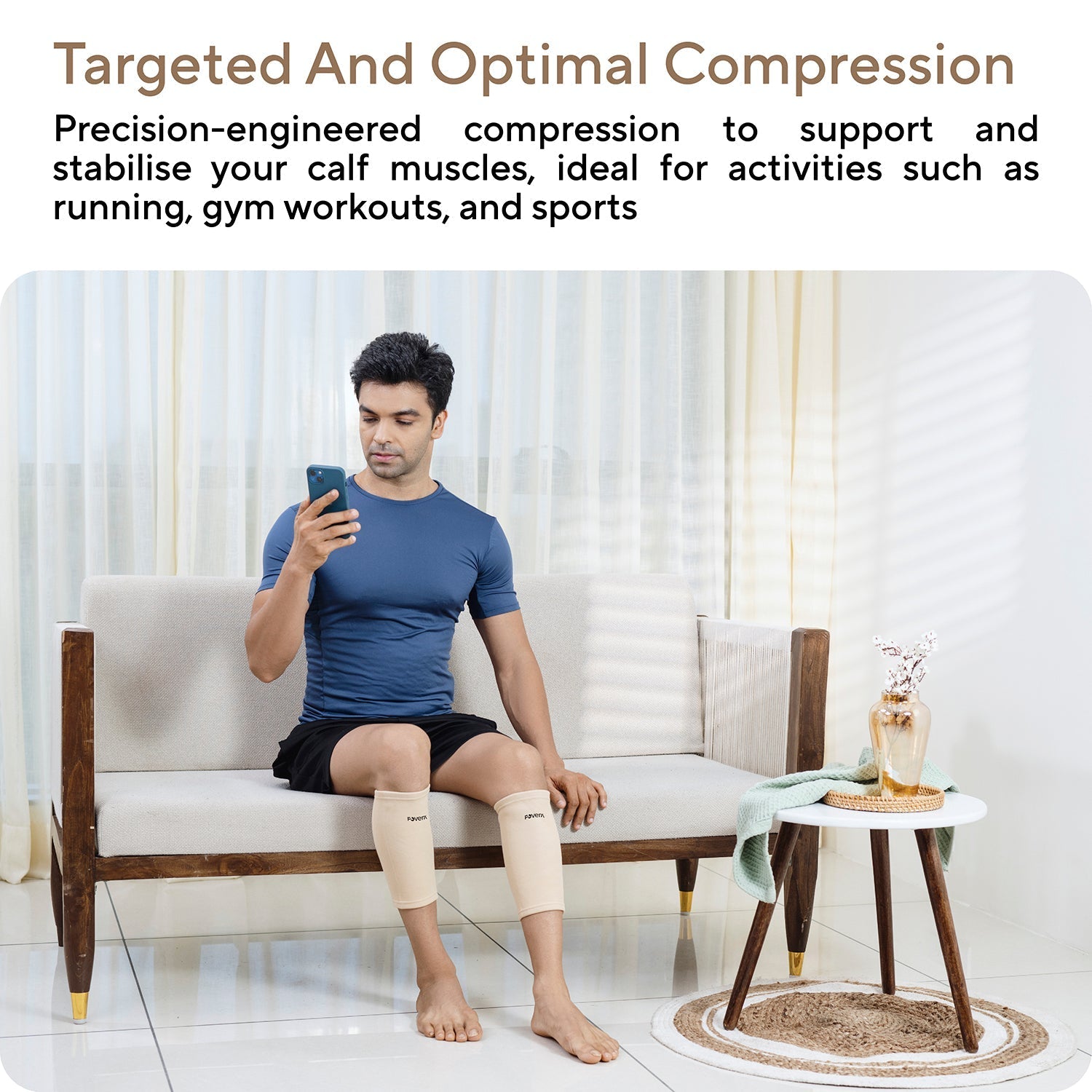 • FOUR-WAY STRETCHABLE FABRIC: The Calf Support Sleeve is made from breathable, washable and moisture-wicking 4 way stretchable fabric which ensures a perfect fit and uniform compression. It allows natural movement and flexibility while providing consistent compression to the calf, resulting in improved comfort and support.