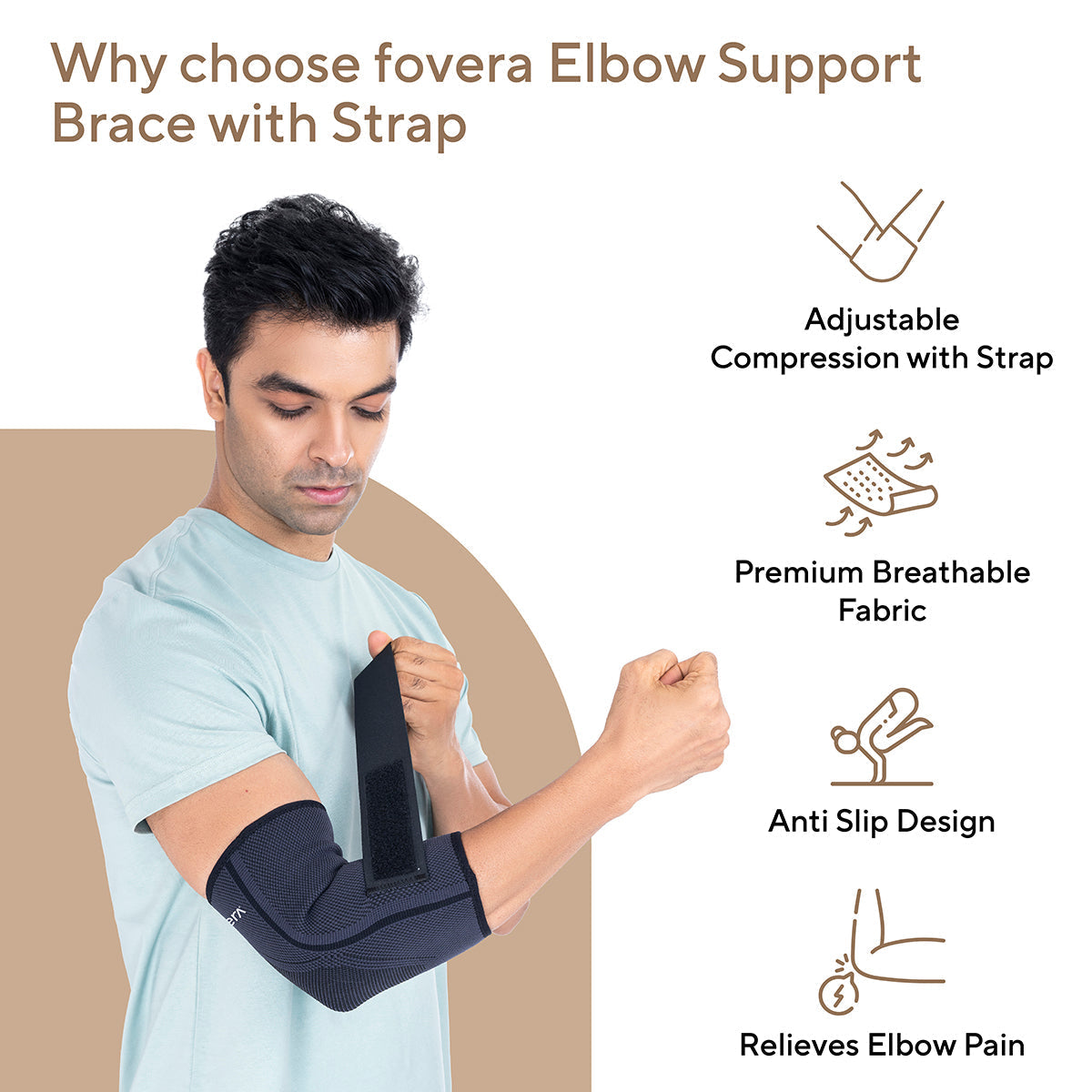 • EFFECTIVE PAIN RELIEF: FOVERA elbow support with strap provides targeted compression to alleviate pain from tennis elbow, golfer's elbow, tendonitis, and other elbow injuries, allowing you to stay active and pain-free.