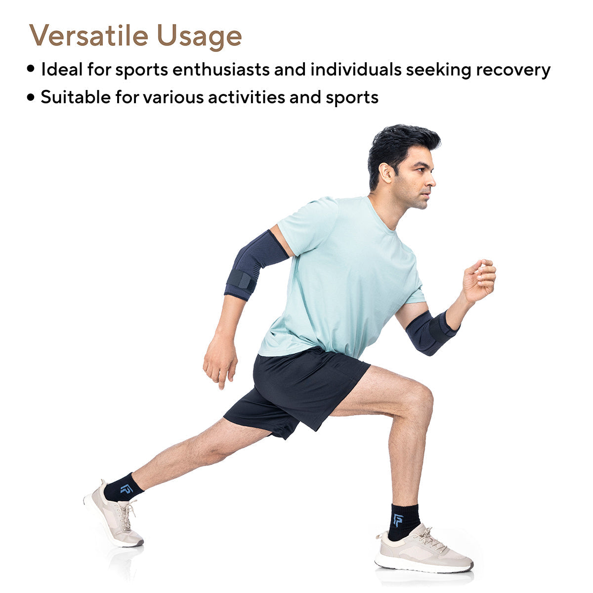 • COMFORTABLE & BREATHABLE: Constructed from breathable elastic material, this elbow sleeve wicks away moisture and provides a comfortable fit that won't restrict your range of motion, ideal for athletes and everyday use.