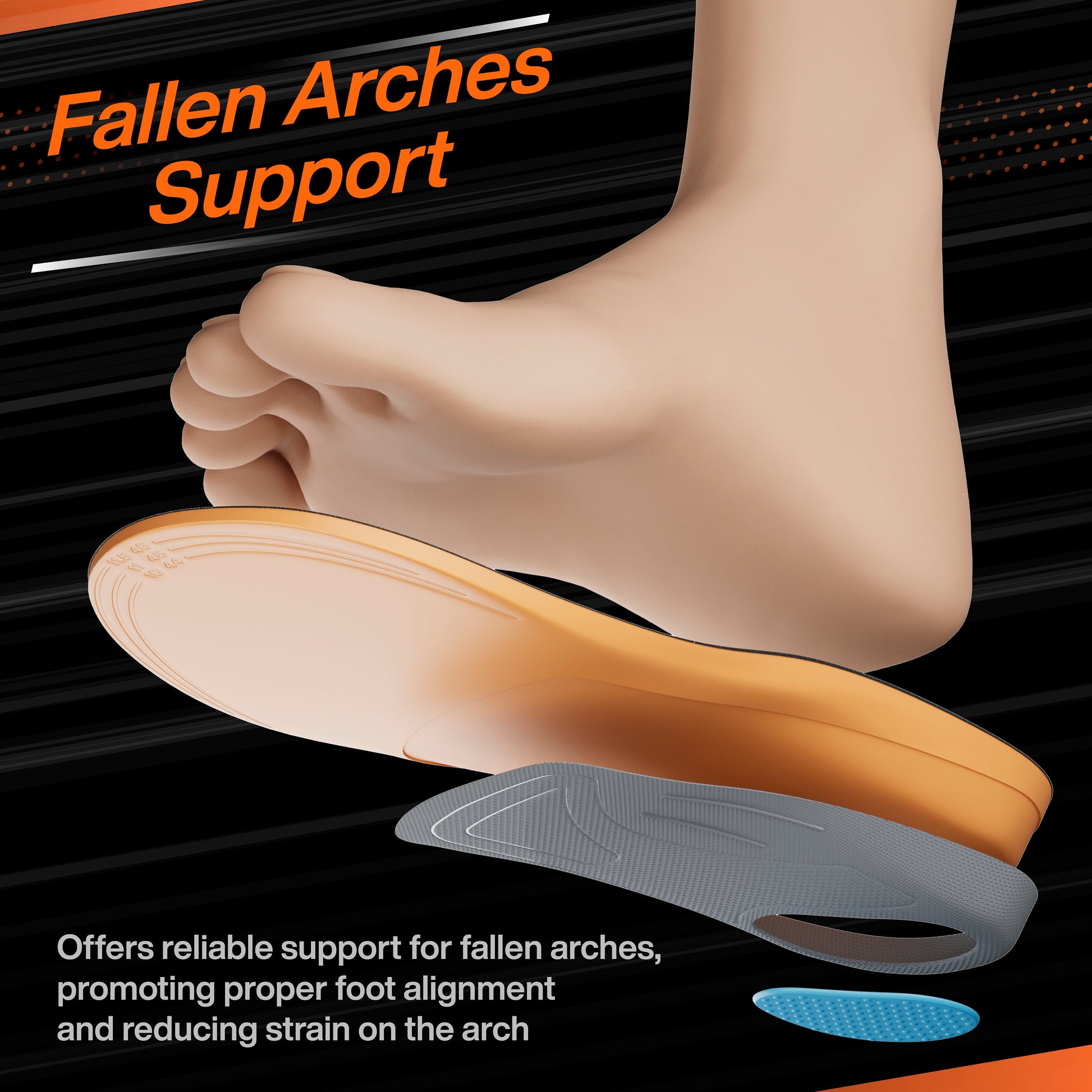• VERSATILE FOOT PAIN RELIEF: Address a variety of foot conditions, including plantar fasciitis, flat feet, fallen arches, and heel spurs, with FOVERA Insoles. Their versatile design makes them suitable for various shoe types, ensuring you can experience relief and support in your favorite footwear. Step confidently with FOVERA Medium Arch Support Insoles.