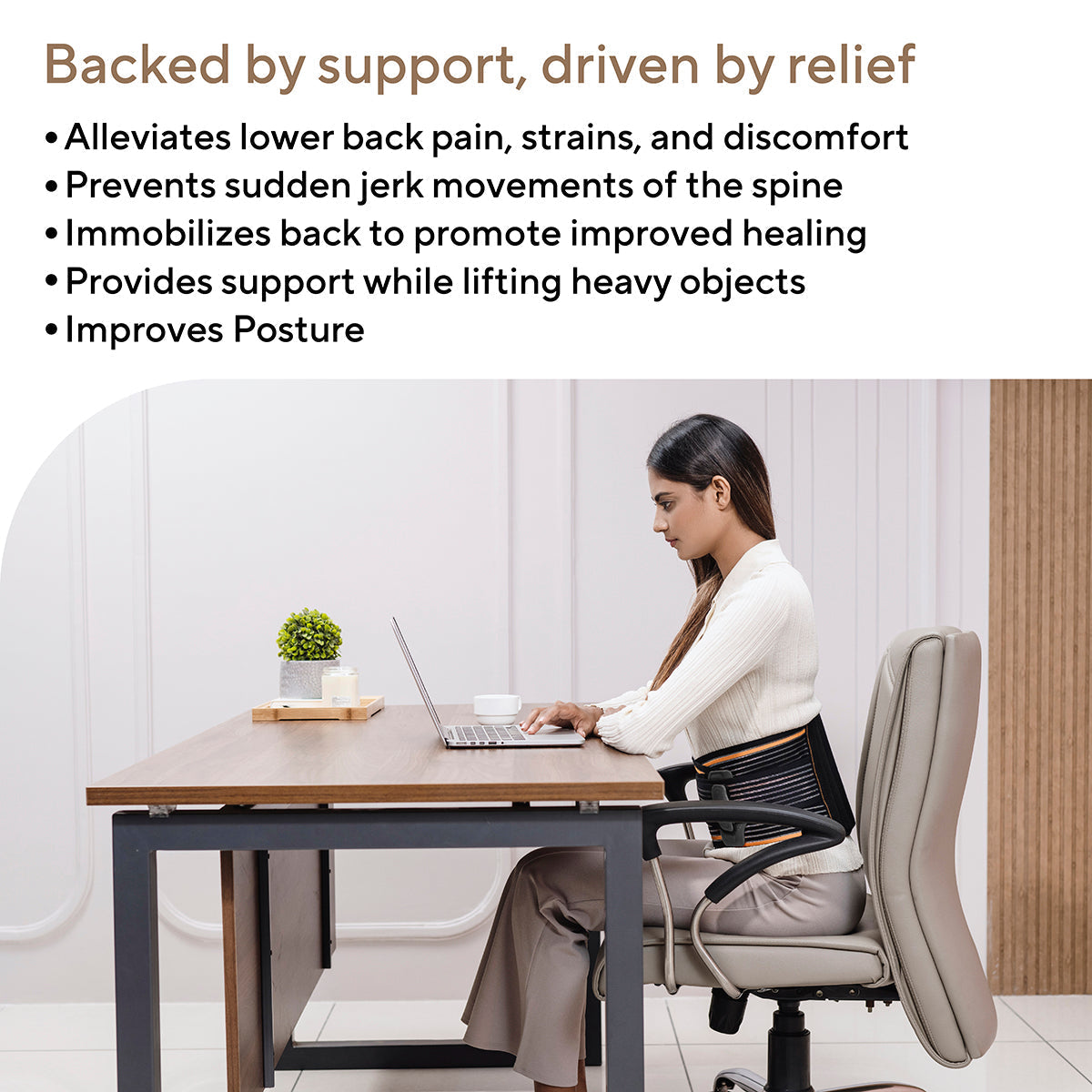 • POSTURE CORRECTION: Wearing our belt regularly can help improve your posture by providing gentle yet firm support to your lumbar region, encouraging proper alignment. Whether you're at work, home, or on the go, this belt is discreet and can be comfortably worn under clothing, ensuring you get the support you need without sacrificing mobility or style.