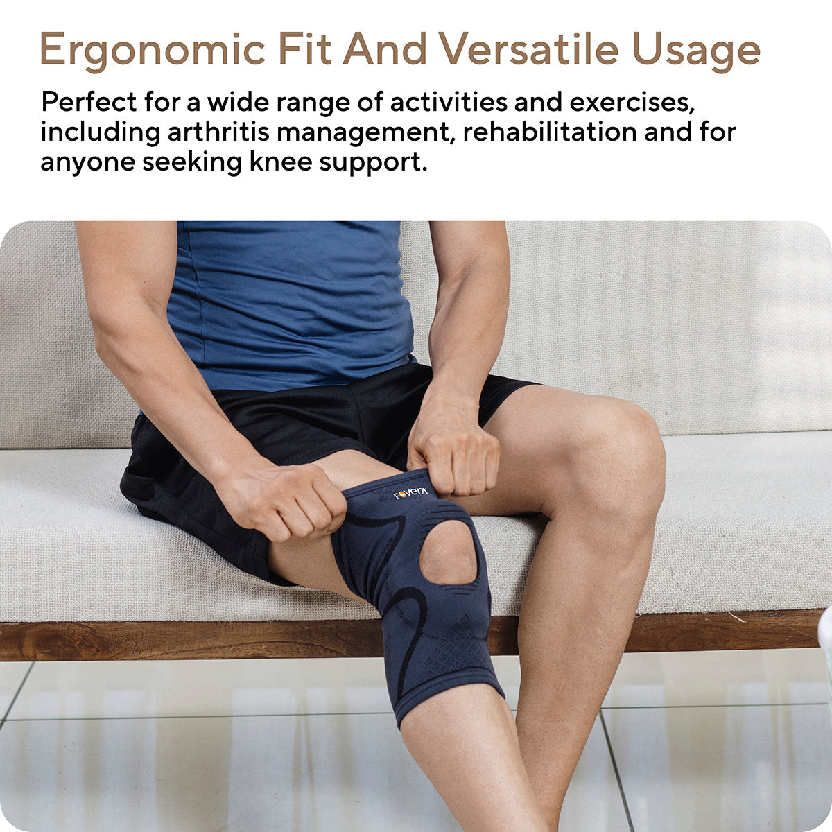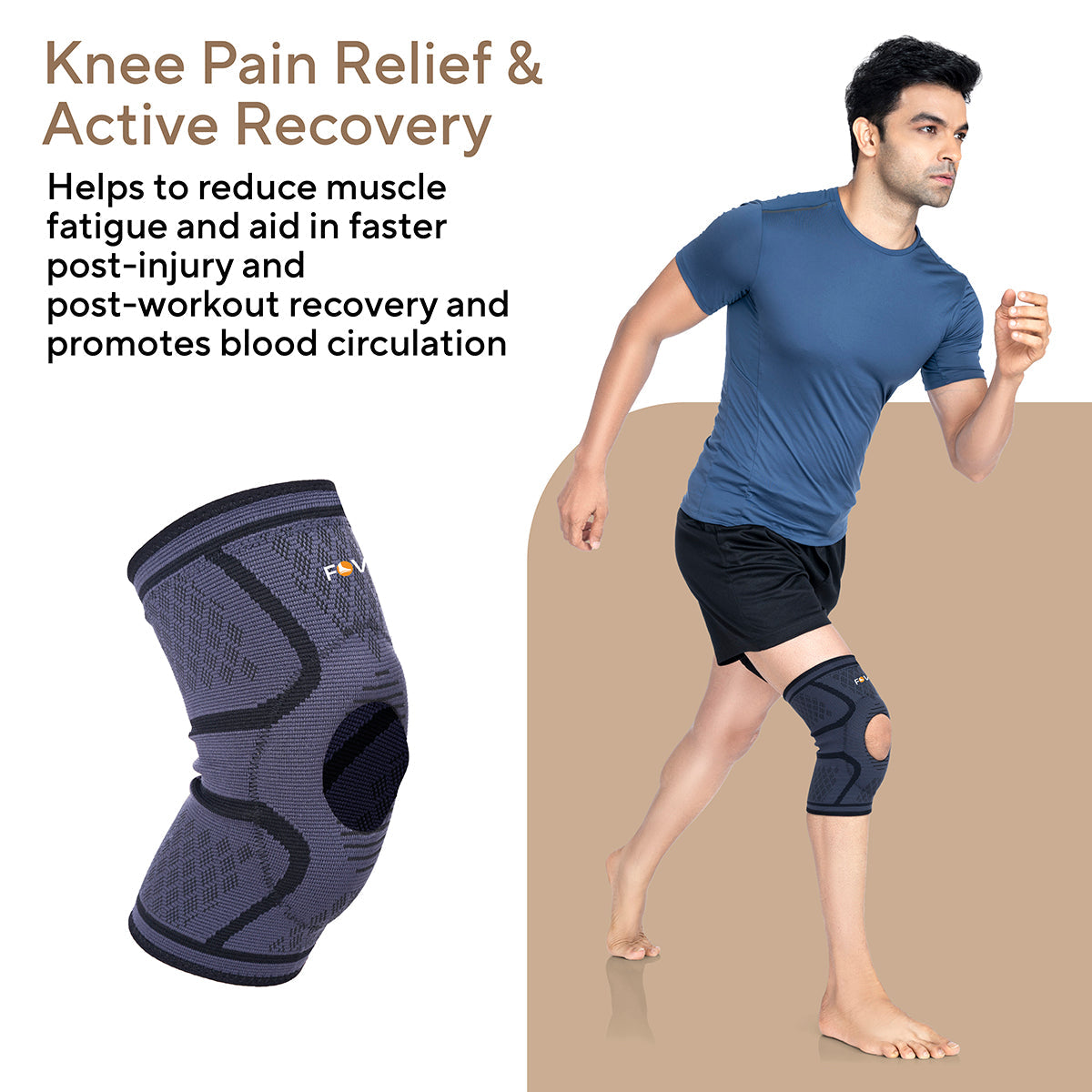 • TARGETED KNEE PAIN RELIEF: Fovera Open Patella Knee Cap provides compression support to help alleviate knee pain and discomfort, allowing you to move with greater ease and comfort. Made from breathable and sweat-wicking material, 4 way stretchable fabric which is not only skin-friendly but also effective in preventing unpleasant odors.